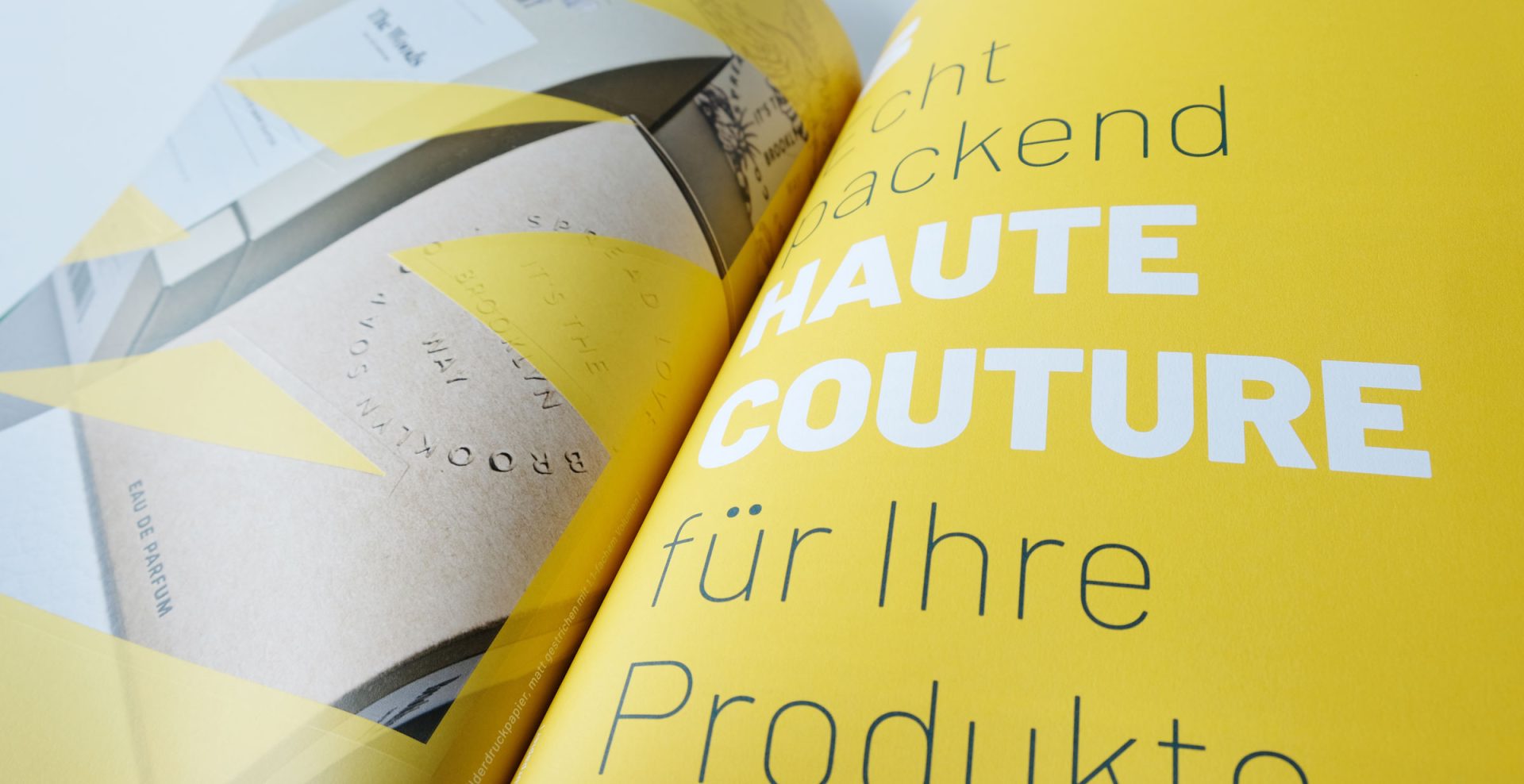 UV-Lack glänzt, aber nicht im Zusammenspiel mit Nachhaltigkeit. Eine Blindprägung hingegen macht Design spürbar – subtil, hochwertig, sinnlich. Das Design der Broschüre zeigt: Papier, Gestaltung und Veredelung gehen Hand in Hand.